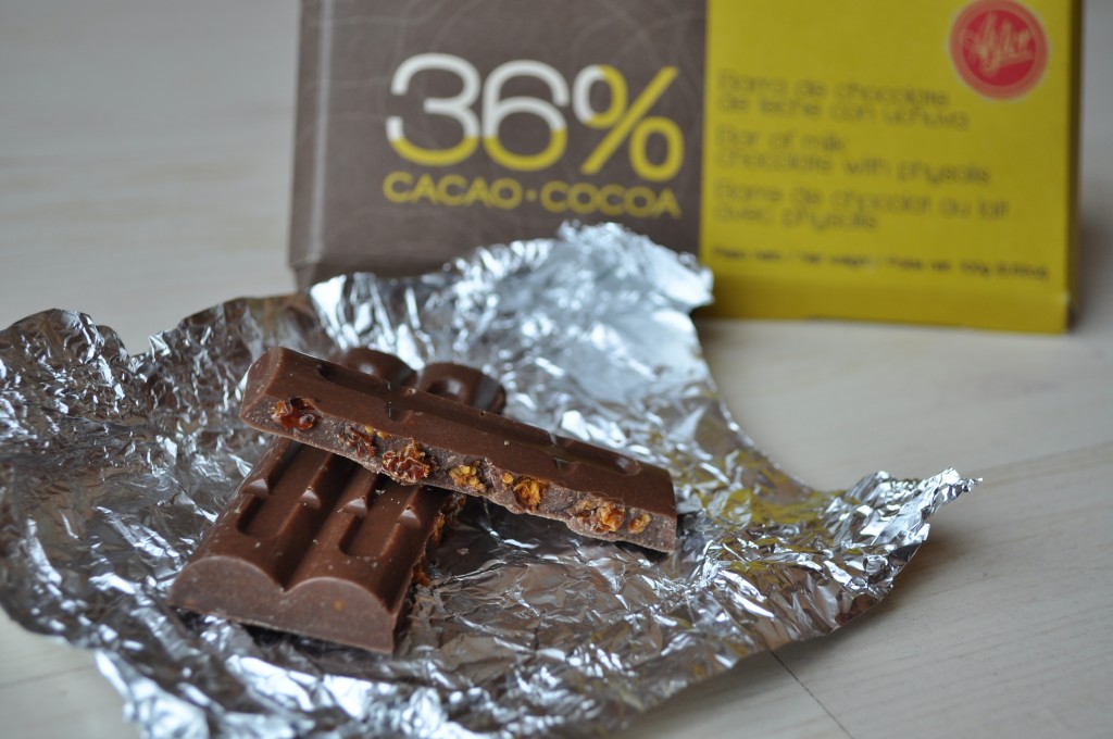 But my favorite bar (and the one I ended up buying) was a milk chocolate bar studded with dried uchuva—a golden berry grown only in Peru, Ecuador, and Colombia. The sweetness of the berries reminded me of raisins, but the uchuva also had a slight sourness and an exotic hint of spice.