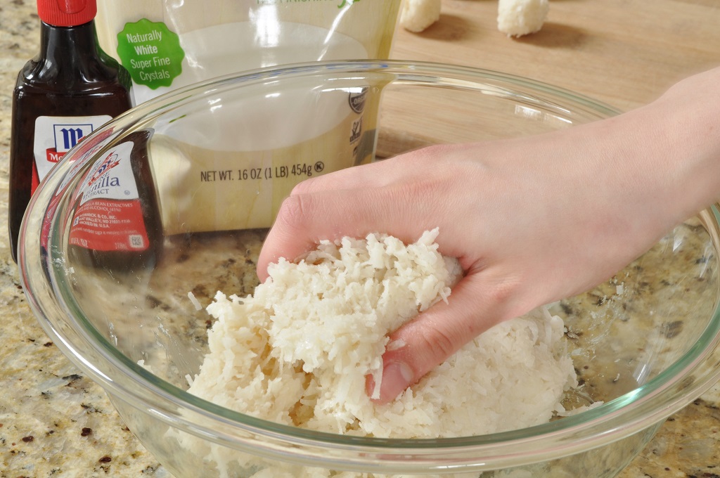 - Toss the coconut and confectioners’ sugar together in a large bowl.