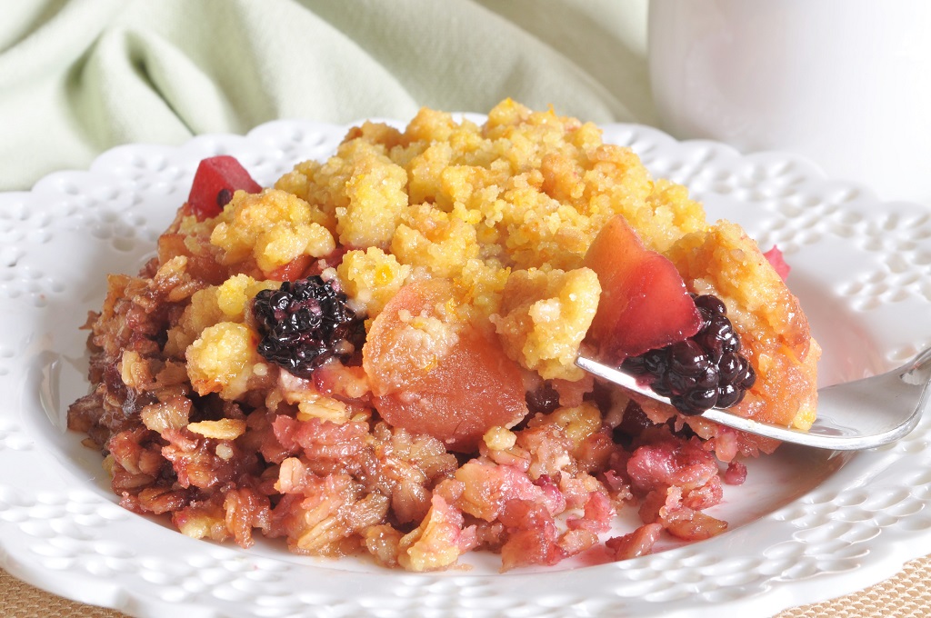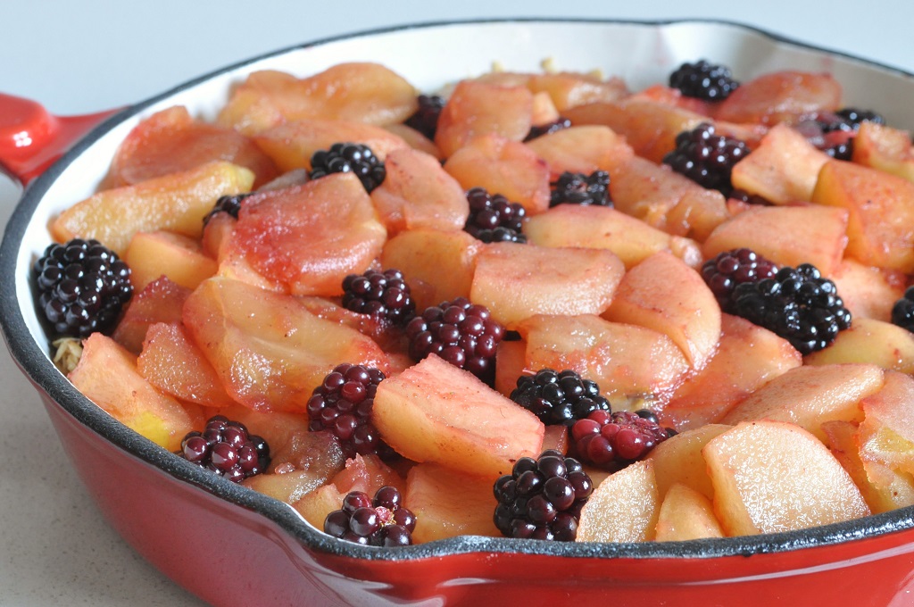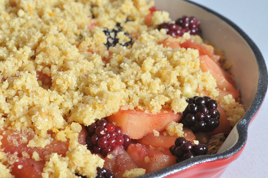 Apple-Blackberry Filling for Flapjack Crumble The Orange Crumb ToppingMy fellow Americans, I believe, have a vague notion that crumbles, cobblers, crisps, and the like are their own invention.