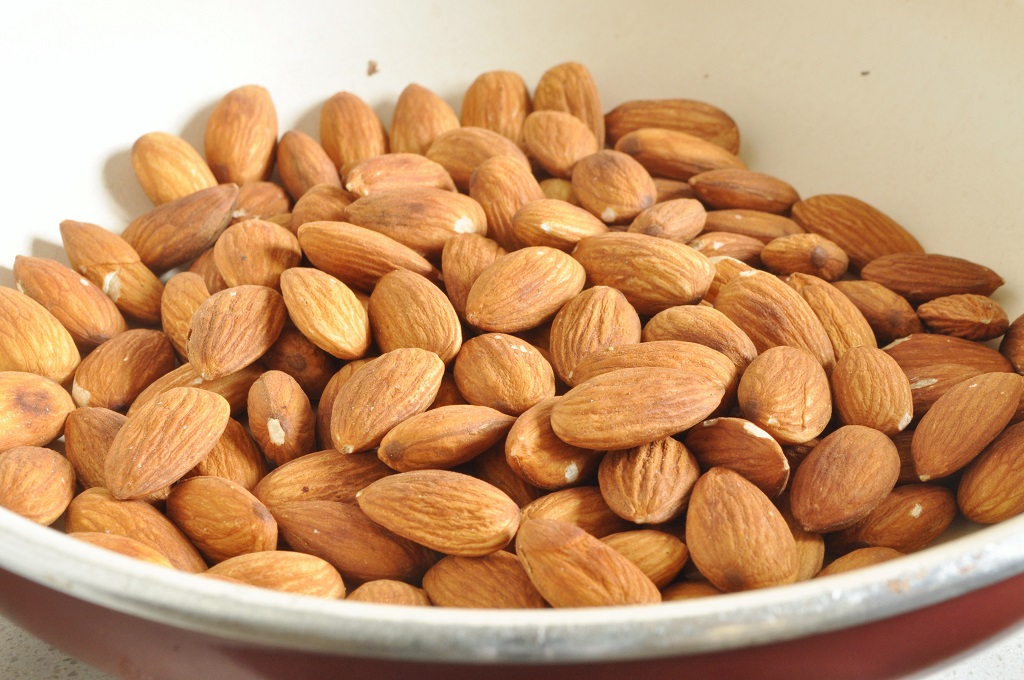 2. In a dry skillet over medium-high heat, toast the almonds until they are fragrant and the skin is darkened in spots, 5 to 7 minutes, stirring frequently to prevent the nuts from scorching.